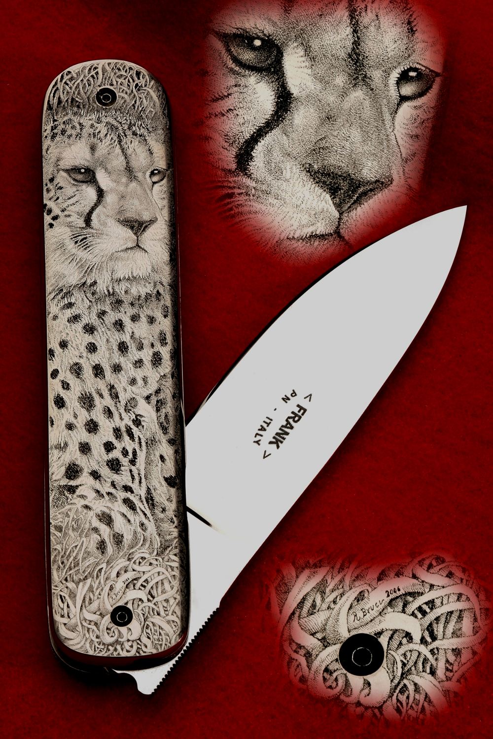Incisione a bulino su titanio (Ghepardo) dettaglio